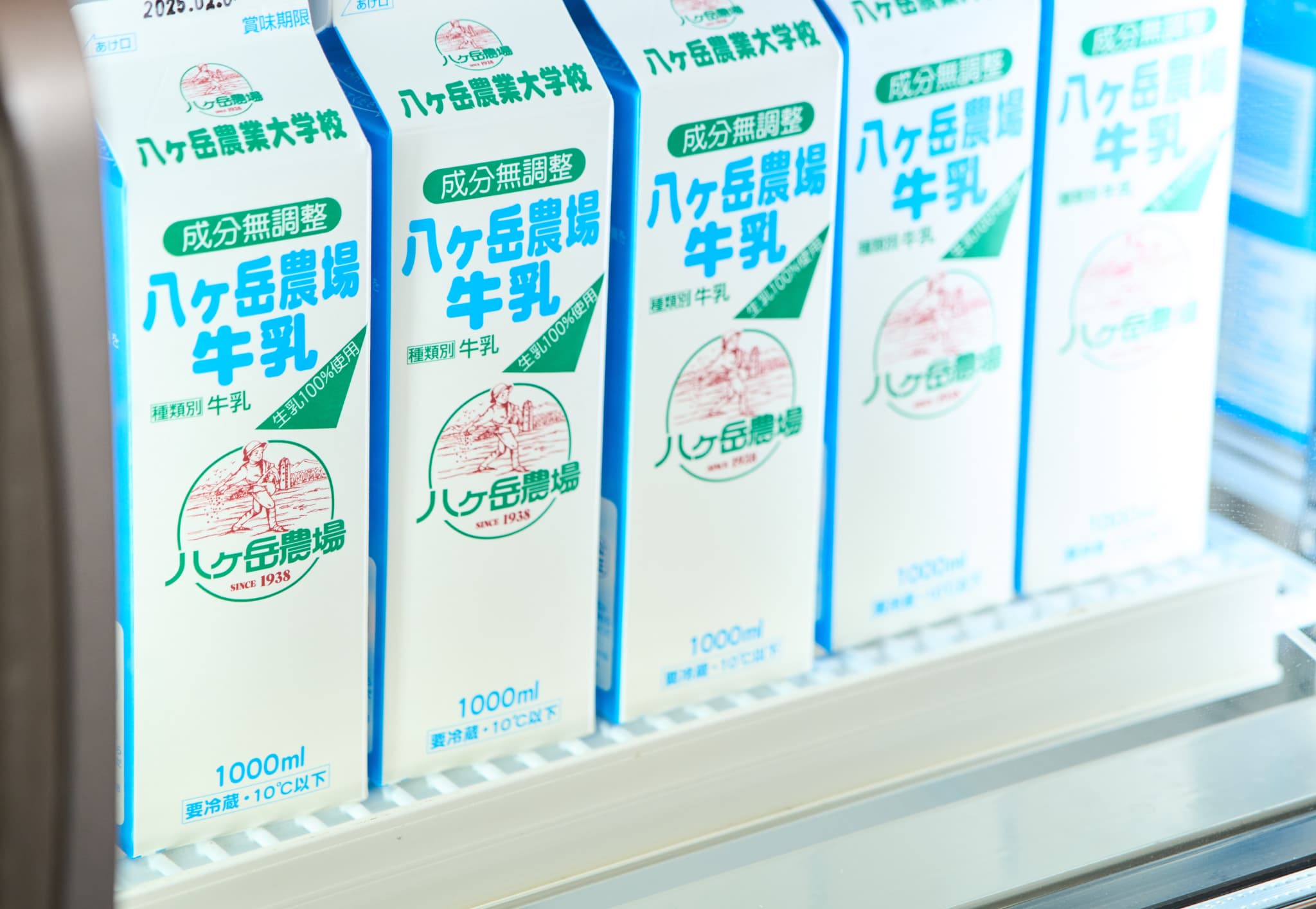 87年の歴史を有する八ヶ岳農業大学校は、2024年の春から経営体制が刷新された。ここをさらに活気づけるべく、神山さんは営業担当として、学校で作った野菜や牛乳の販売に奔走。校内の直売所はもちろん、取り扱い先を増やす活動に力を注ぐ。「うちの牛乳、甘くてコクがあるんです。子どもたちもこの牛乳が大好き。自信を持って売っています」と笑顔だ。