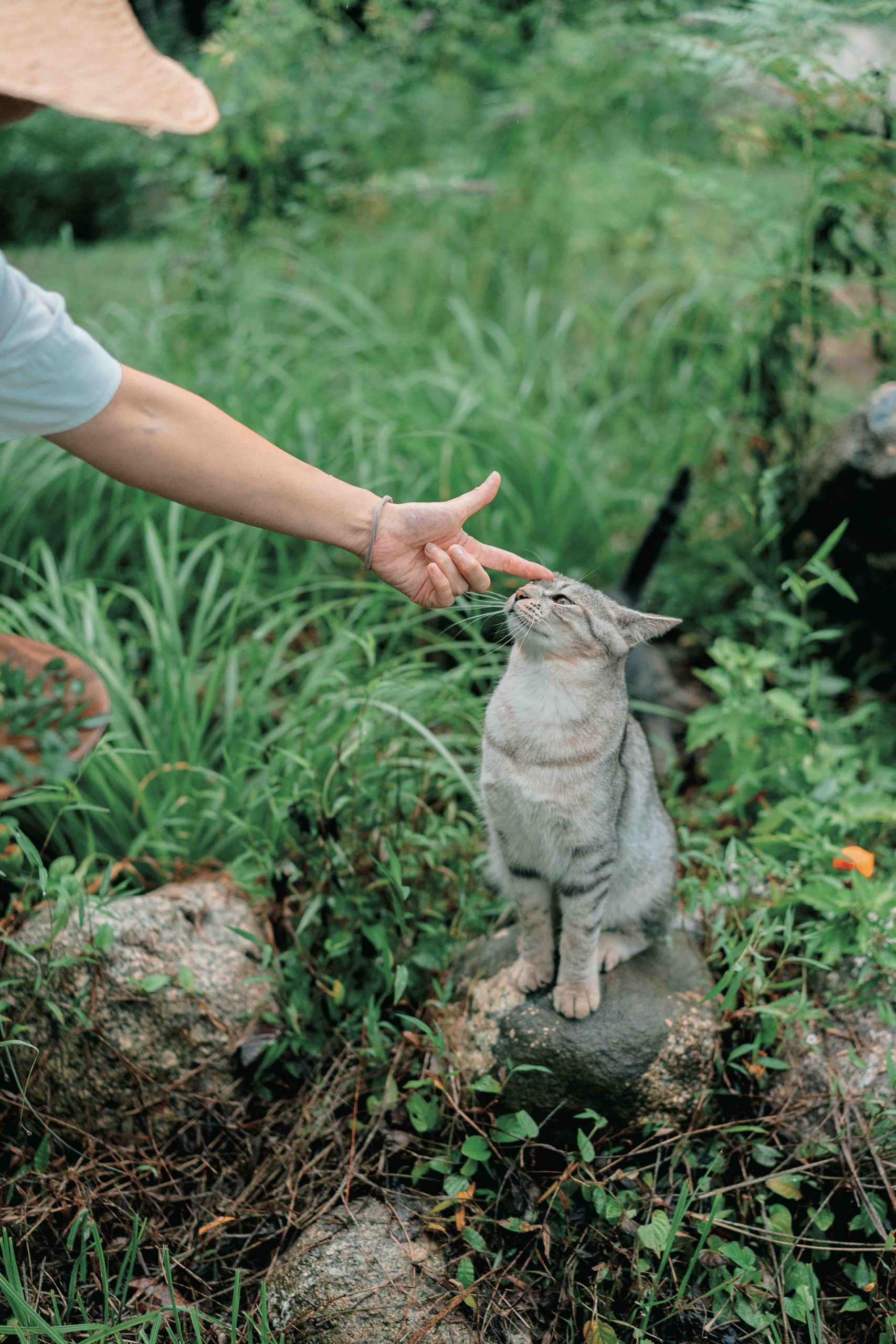 迎え入れたきょうだいの保護猫は、甲斐駒ヶ岳にちなんでカイとコマと名付ける。庭は2匹の格好の遊び場。小雨もいとわずのびのびと駆け回る。